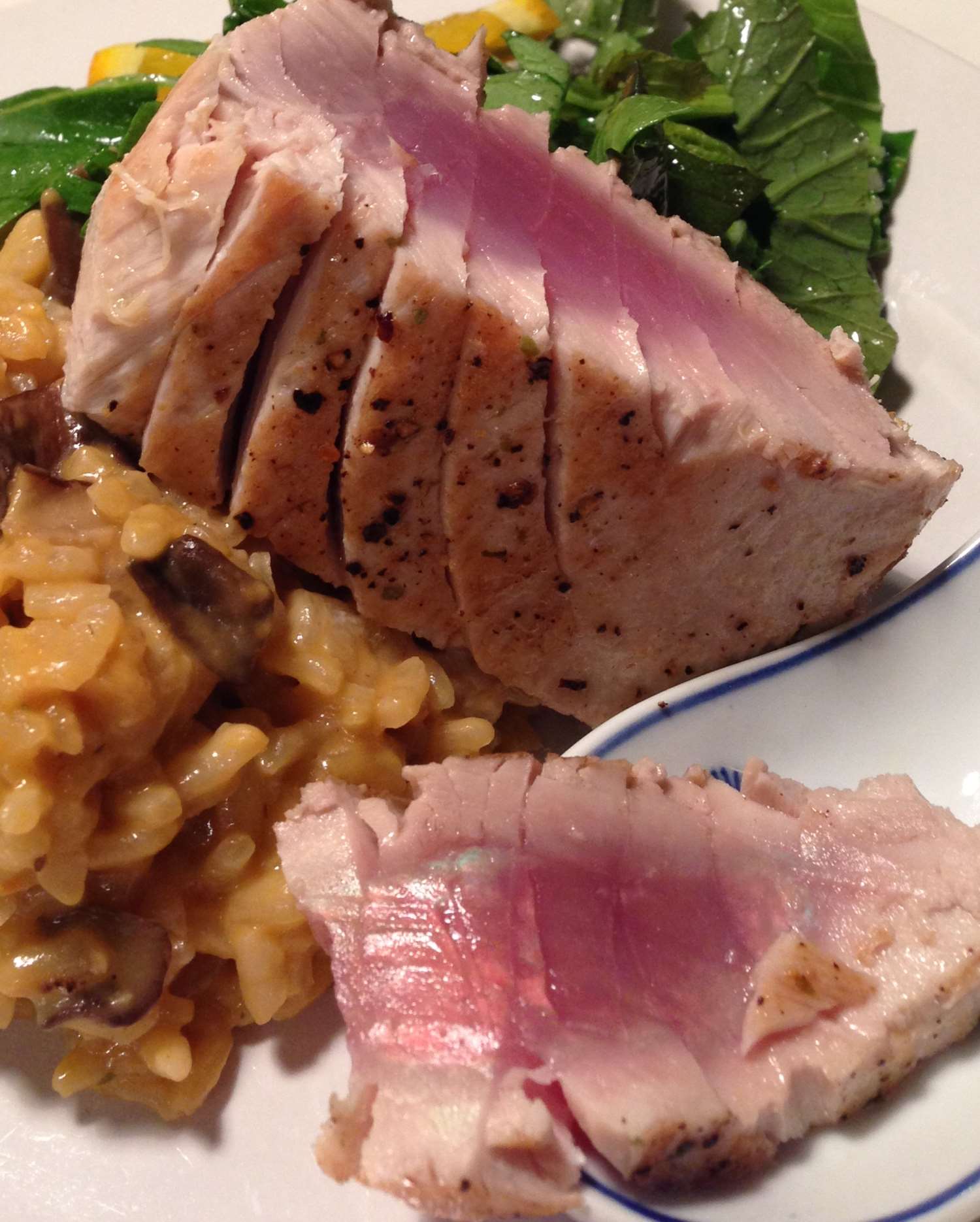 Bei Thunfischfilet sollten meine beiden Einwände unbegründet sein. Gräten gibt es nicht und das Rezept das ich mir überlegt habe klingt idiotensicher. Dazu soll es Risotto geben. Aufgepeppt mit asiatischen Mischpilzen eine gute Kombination.