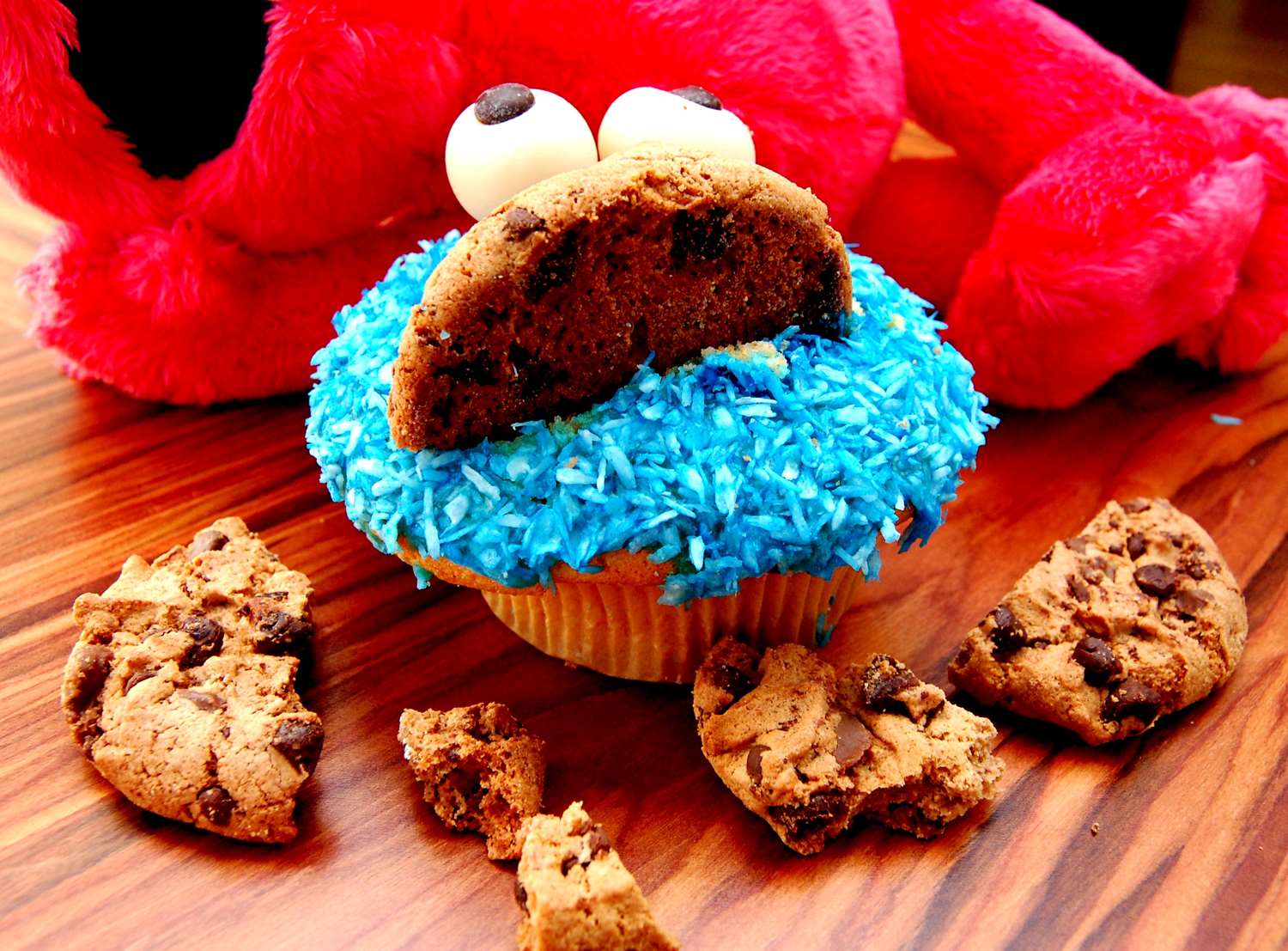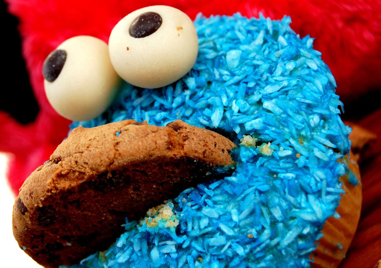 Und ich soll auch noch etwas gebackenes mitbringen. Juhuuu! Ich warte schon so lange auf eine Gelegenheit um Krümelmonster Muffins zu backen. Jetzt kann ich also loslegen. Das Innenleben mache ich mit meinen „altbewährten“ Vanille-Schoko Muffins. Cremiger Vanilleteig mit Schokodrops… Um den Monster Ihren Look zu verleihen, werden Kokosraspeln mit blauer Lebensmittelfarbe eingefärbt. Ihr habt richtig gelesen – schon wieder ein Rezept mit Kokos… 🙂
