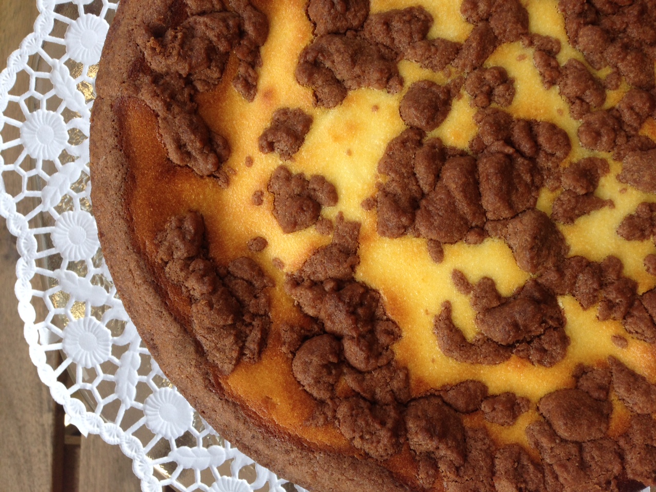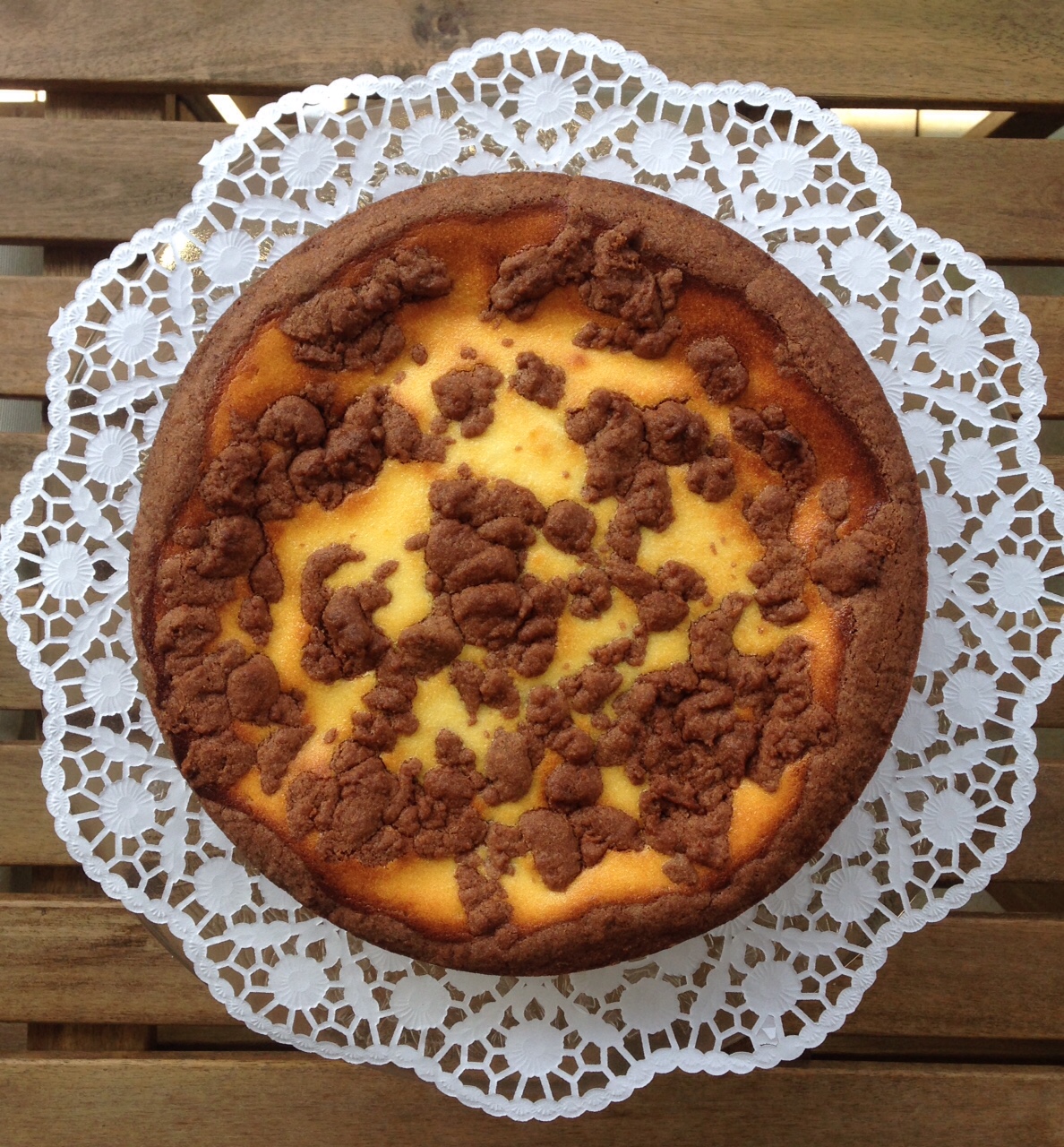 Die Masse in die Springform verteilen. Den restlichen Mürbeteig auf der Creme zerbröseln. Man kann hier als Alternative den Teig auch ausrollen und Formen ausstechen. An Weihnachten Sterne oder am Valentinstag Herzen… Hier ist eurer Fantasie keine Grenze gesetzt…