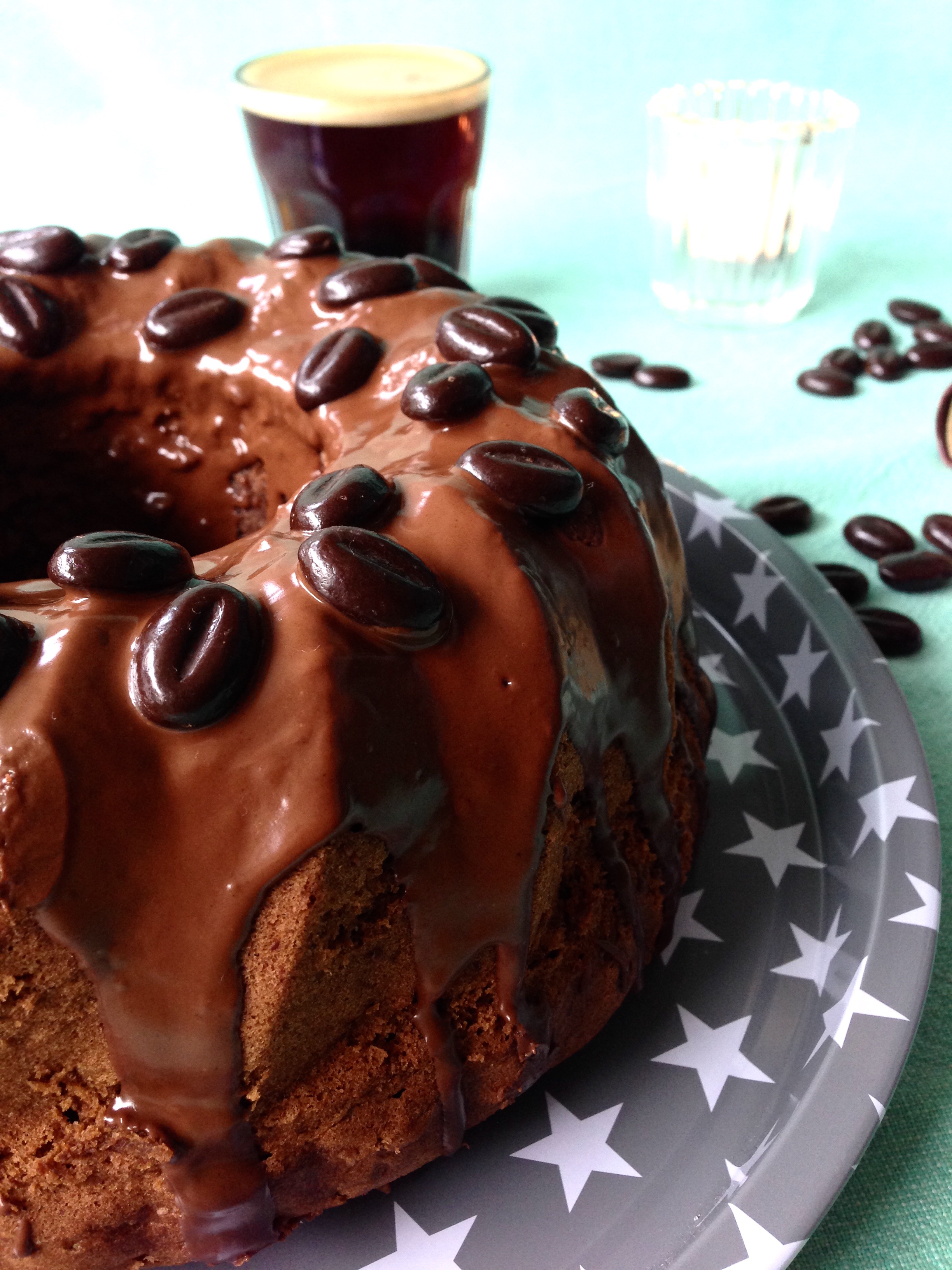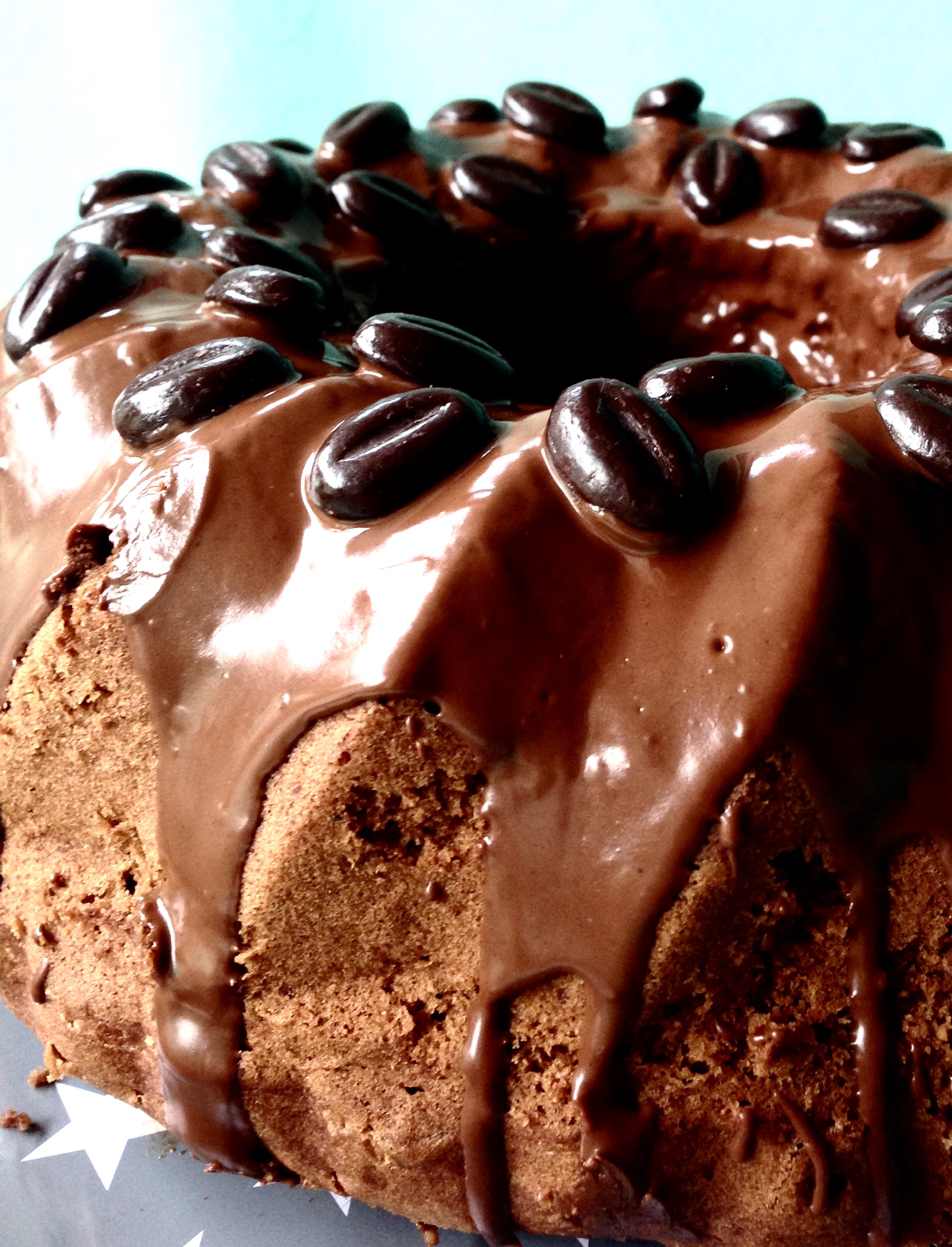 Heute bei uns zum Kaffee und zwar mit Kaffee und Espresso. Sozusagen nebendran und innendrin. In den Rührteig kommt nämlich eine Ladung Kaffee und jede Menge Espressopulver. Trotz allem schmeckt er danach nur sehr dezent nach Kaffee. Das mag ich sehr und sogar meinem Mann schmeckt es, der absoluter Kaffeeverweigerer ist. Den Teig habe ich wenig gesüßt, so kommt die Schokoladenglasur mit den Mokkabohnen sehr gut zur Geltung. Das Rezept ist übrigens entstanden als ich in meinem Schrank noch Espressopulver entdeckt habe. Ich muss sagen – eine sehr leckere Resteverwertung…