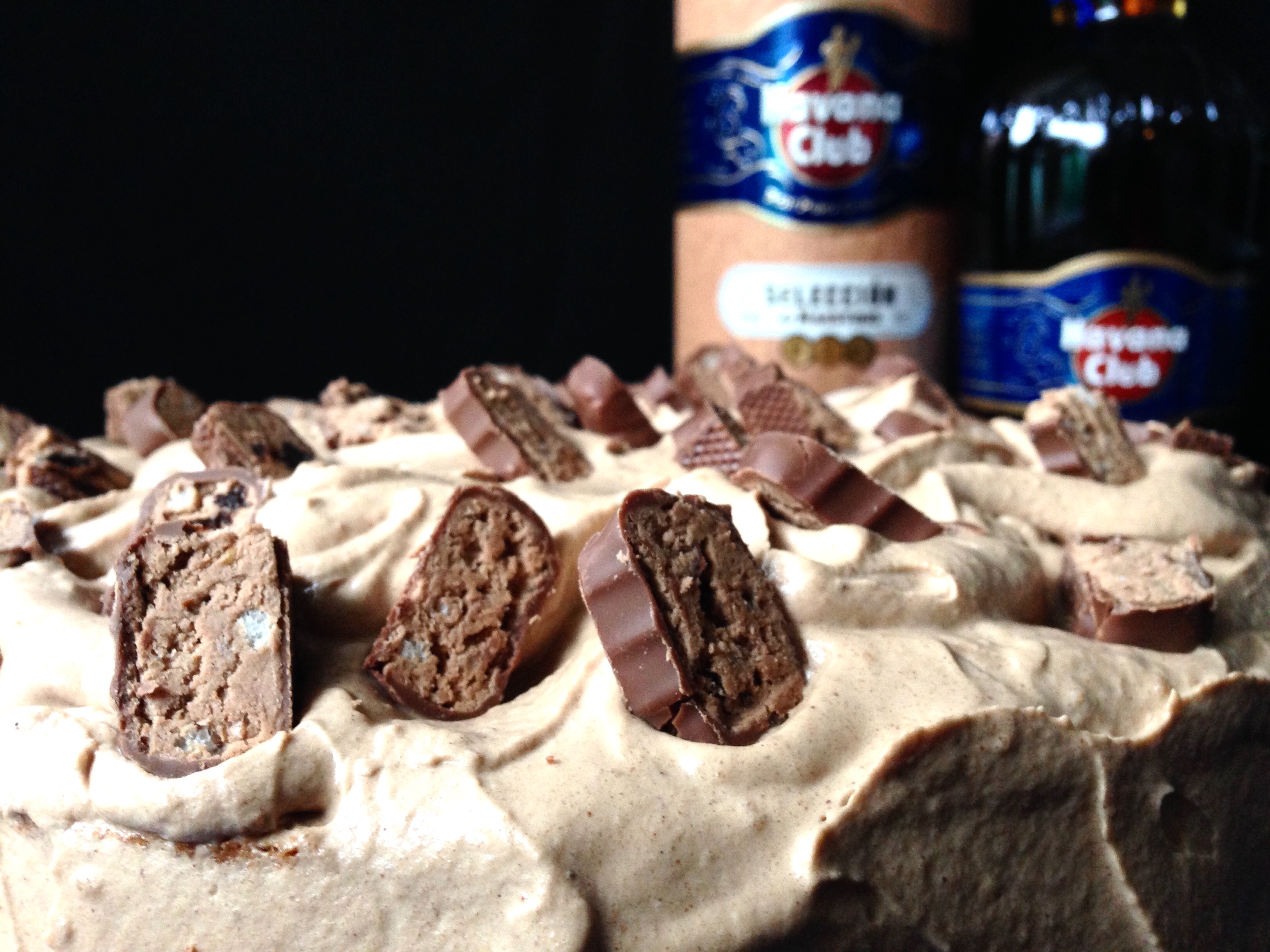 Lockerer Biskuit, dazwischen eine Erdbeer-Sahne Creme getoppt mit Ritter Rum Stückchen. Außen sollte eine Nougat Sahne den Biskuit verhüllen und die Dekoration waren wieder Ritter Rum Scheibchen… Klingt gut, oder? Und es war ein voller Erfolg. Das Geburtstagskind war zufrieden und auch dem Rest hat es prima geschmeckt…