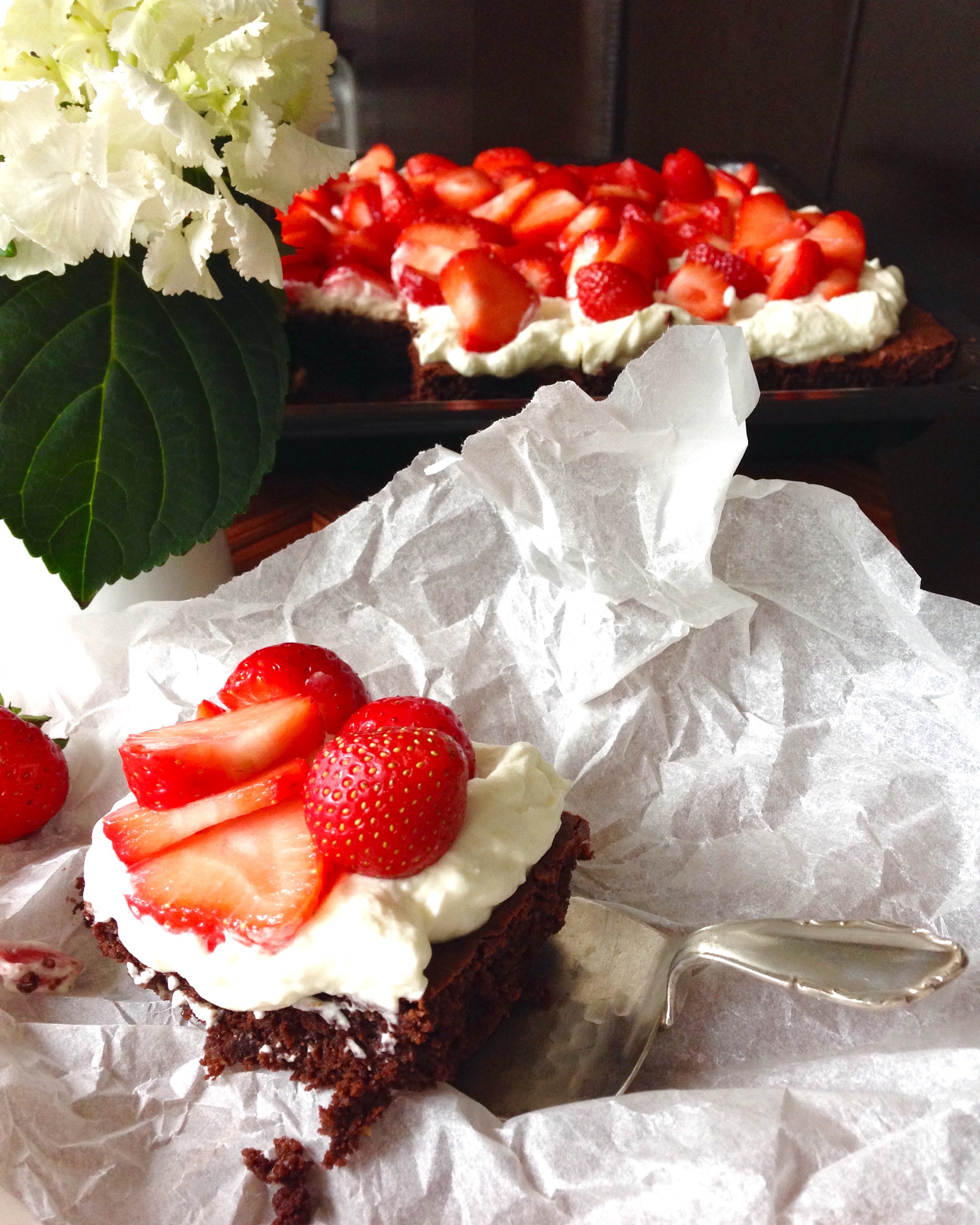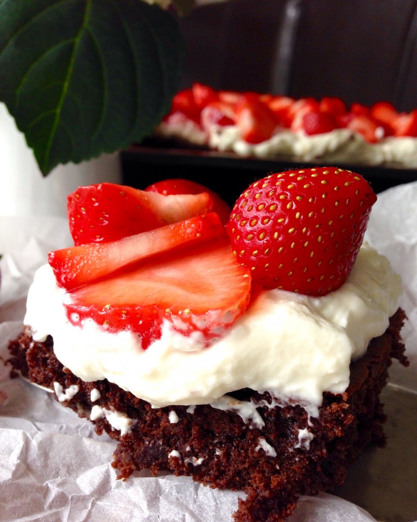 Ursprünglich schreibe ich, weil das Rezept für ein Kuchenblech ist, mit Erdbeeren garniert wird und zum Schluss noch eine Maracuja-Erdbeersoße darüber kommt.
